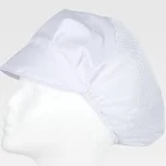 Cofia recoge pelo con visera. Pliegues en la parte frontal y rejilla transpirable con elástico en la zona posterior. Adaptable, ideal para alimentación.